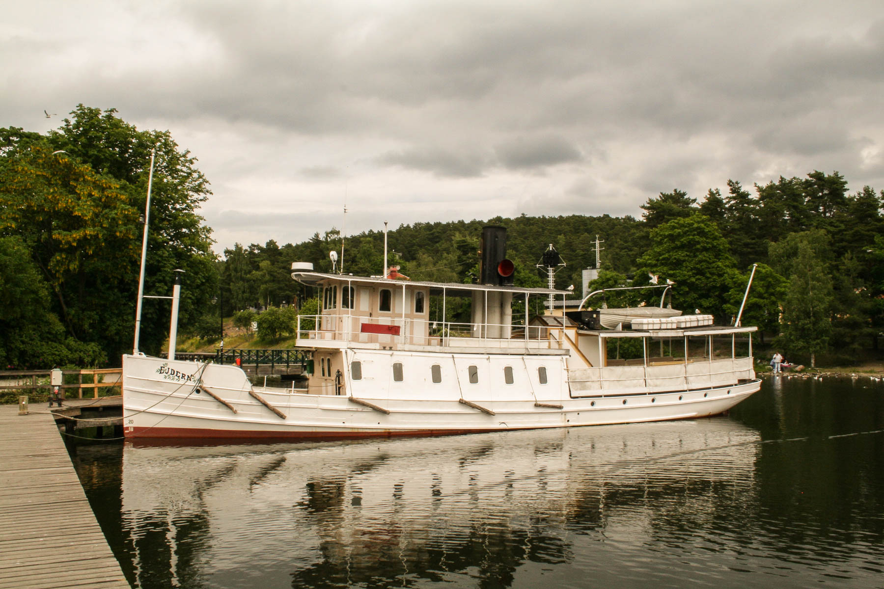 Har man tur så ligger Södertäljes stolthet inne vid sin kajplats. Ejdern är världens äldsta ångfartyg som fortfarande har orginalmotorn kvar. Hon sjösattes 1880 i Göteborg. Denna vackra dam går fortfarande i trafik och har också medverkat i filminspelningar.