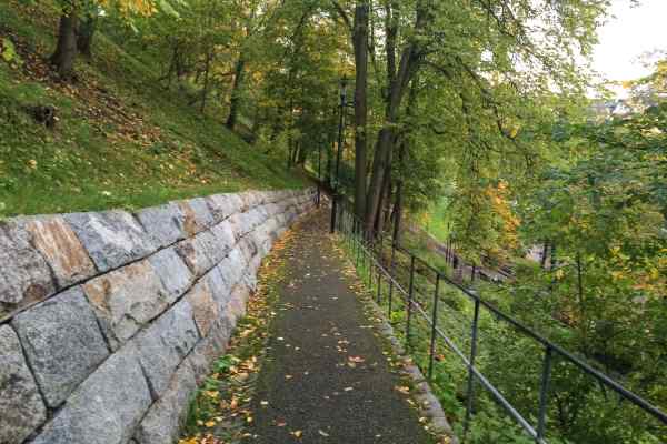 Monteliusvägen slingrar sig fram längs Mariaberget. Blicka ut över skeppen som ligger på svaj eller få svindel av de hisnande vyerna över Riddarfjärden.