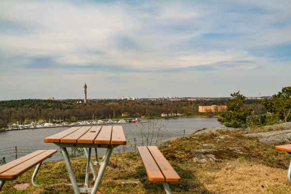 Att ta sig upp här är väl värt besväret. Bedårande utsikt mot sjön Trekanten och City. Vattentornet rymmer 64000 kubikmeter och förser en stor del av stan med vatten.