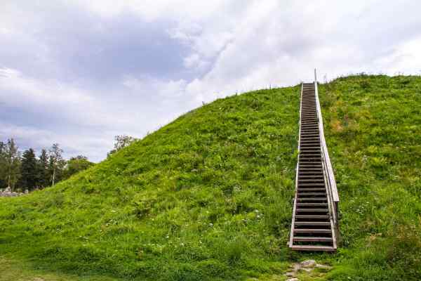 Södermanlands största kungagrav, troligtvis från järnåldern, är en maktmarkering vid det tidigare så strategiska inloppet. Utsikten från toppen är enastående!