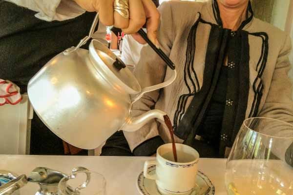 I det gamla elevhemmets fantastiska lokaler, med målningar av Elsa Beskow, erbjuds man prisvärd mat med många tidstypiska inslag. Kokkaffe efter maten?