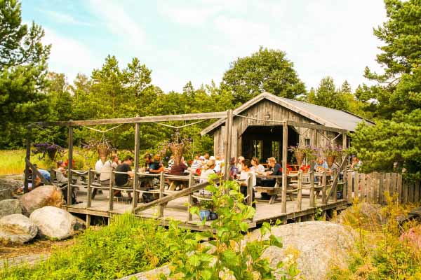 Alldeles vid ångbåtsbryggan ligger denna jättepopulära skärgårdskrog. Många bröllop och födelsedagar bokas här för man kan även sova över. En stor uteservering med bar under tak lockar till allt från sköna frukostar till sent barhäng.