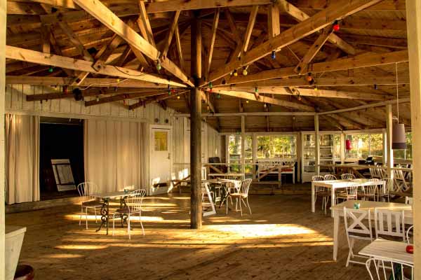 En lada vid sjön och en stor veranda precis vid Ålö brygga. Musikunderhållning titt som tätt och maten är gedigen och det bästa från sjön. Räkor, lax, löjrom, ål och strömming i olika former.