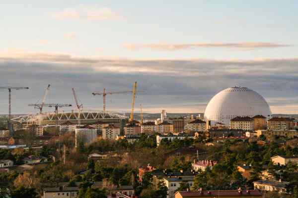 Det är lite kämpigt att ta sig upp för skidbacken men värt besväret, för utsikten är enorm. Hammarby sjöstad, Sickla, Nacka strand, Södermalm och Globenområdet.