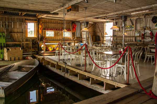 Krog och kafé öppen både för lunch och middag på sommaren. Trots att man har uteservering är det till det gamla båthuset man bör söka sig för mest unik upplevelse.