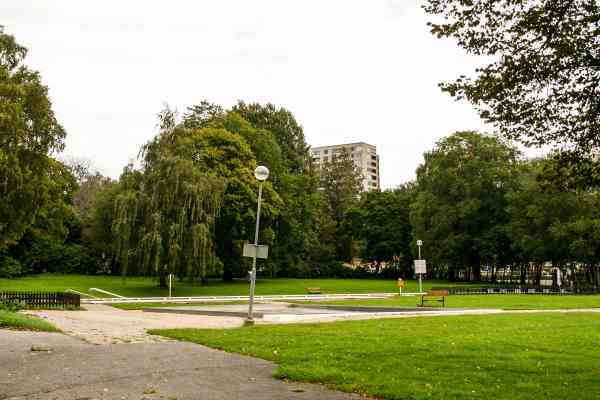 Ett stort bad med kiosk och flera grillplatser. Två bryggor vid sandstranden men även gräsmattor att sola på för den som vill slippa sand överallt. Volleybollnät på stranden och den släta gräsmattan är perfekt att prova fotbollsfinter på.