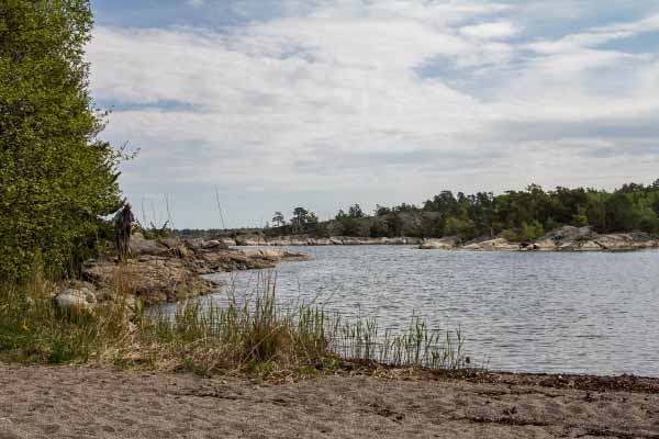 Ett litet bad med sandstrand och brygga på Brevikshalvön bredvid ångbåtsbryggan från vilken man kan fortsätta ut i skärgården. Innan vattnet är varmt nog att bada så får man lapa sol med friska fläktar från havet.
