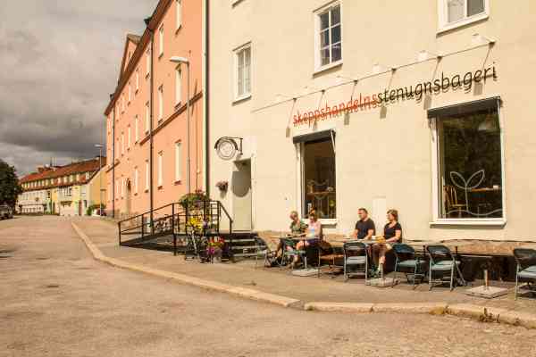 Här gick en färjelinje innan Ölandsbron som man ser härifrån på håll byggdes. På Stora Rör hamnkrog äter man gott eller så fikar man på Mormors Stenugnsbageri & Kaffestuga, båda med härlig utsikt över Kalmarsund.