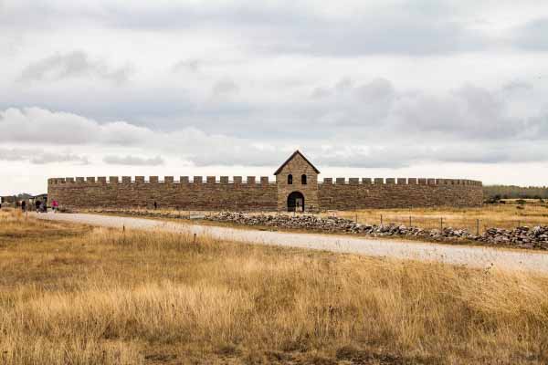 En formidabel turistsuccé där man byggt upp den gamla borgen som legat här sedan 300-talet. Har man möjlighet ska man pricka in då personalen är utklädd i tidstypiska kläder och borgen visar sin vardag.