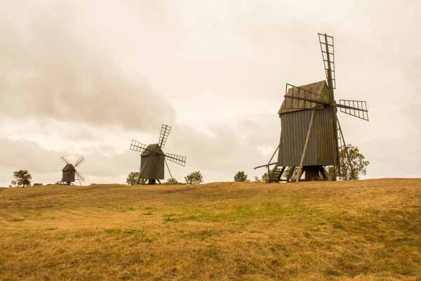 Kända från frimärken är dessa tre kvarnar alldeles intill väg 136 vid en rastplats. Som alla kvarnar ligger de öppet och högt så utsikten blir därför ofta bra. Här är utsikten magnifik.
