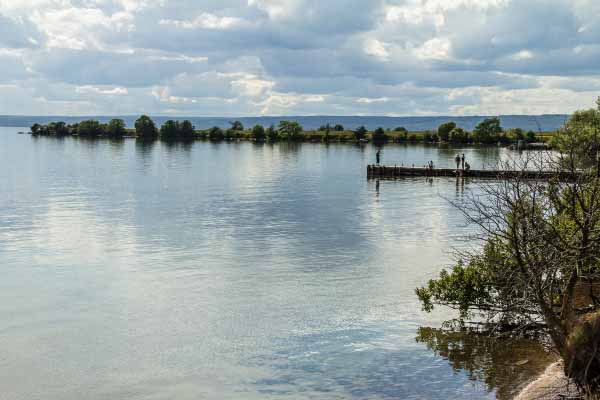 En tur på norra Visingsö som passerar Visingsborg, ett kyrktorn man kan bestiga, märkliga Tempelgården och ett härligt strandbad mm.