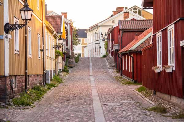 En fantastiskt charmig stadsdel i Gävle med kullerstensgator och en stadsplan delvis från medeltiden men husen är mest från 1700-talet.