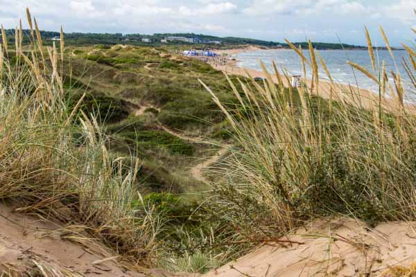 En lite lugnare strand än Tylösand som är grannen i söder. Här finns härliga sanddyner där man kan få perfekt bokläsningsvinkel eller passa på att få lite backträning mellan solglimtarna och doppen.