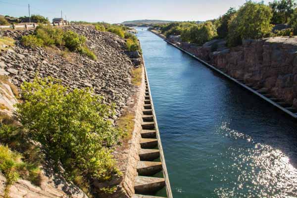 Sotekanalen byggdes för att man skulle slippa färdas den riskfyllda passagen utanför Soteskär. Här vid bron kan man se den spektakulära öppningen av svängbron för båtar som inte kan passera under.