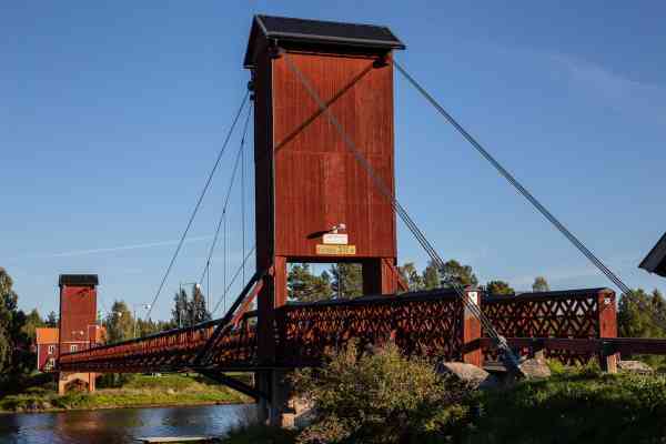 På 1700-talet fanns en flottbro här som Linné färdades över. Den typen av bro var känslig och den drogs med i en översvämning 1916. Hängbron i trä på 158 m ersatte och är Sveriges längsta för bilar.