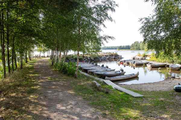 Hit åker många för att äta på gästgiveriet eller fika på hamnkafét. Att vandra längs hamnen och stranden med Blå Jungfrun i horisonten är en härlig upplevelse. Fin badplats.