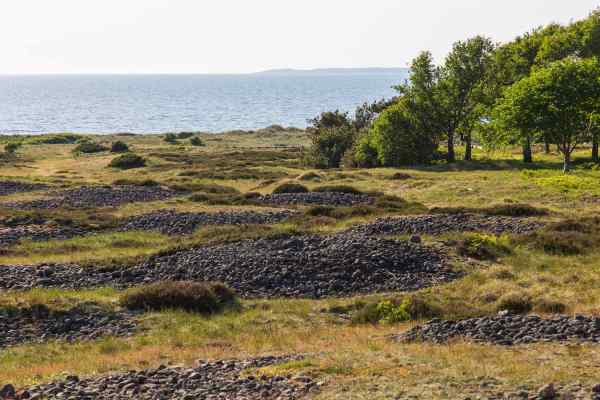 Hallands största gravfält och beläget på ett klapperstensfält. Den sagolikt vackra platsen med utsikt över Laholmsbukten är en värdig avskedsplats för de begravda i flera hundra gravrösen.