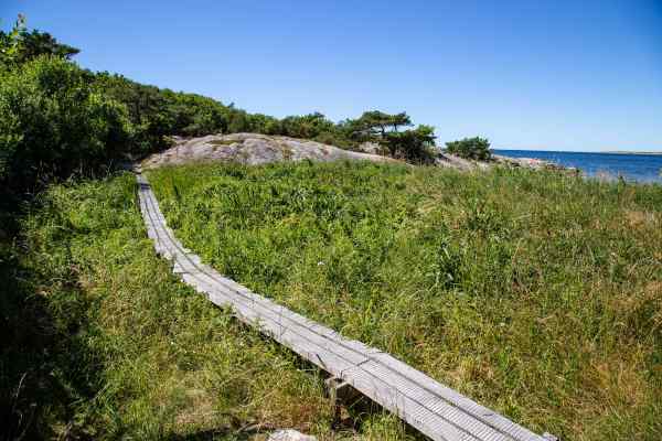 Ett litet naturreservat som erbjuder flera lite kortare vandringsleder med enastående naturupplevelser. En fin badplats, bokskog med svalkande skugga och utsikt över Västerhavet.