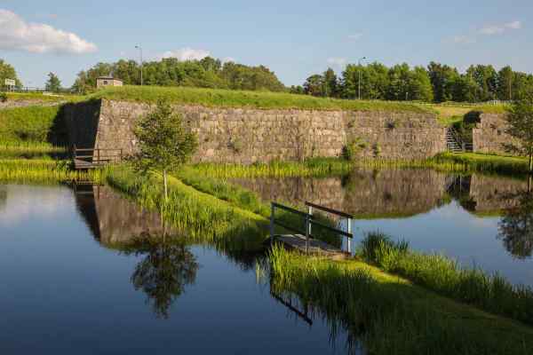 Ruinerna efter borgen Lagaholm ligger vackert vid Lagan strax norr om centrala Laholm. En dansk kungsgård fanns här redan på 1200-talet men slottet brann 1637 för att senare förses med de vallgravar som finns kvar idag.