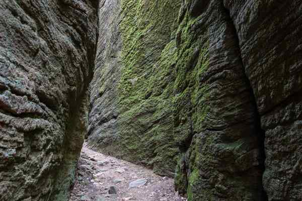 En kort promenad från parkeringen får man uppleva denna 100 m långa, 10 m djupa och endast 0,5-2 meter breda klyfta. Sägner säger att man måste hoppa över klyftan för att bevisa ett och annat. Prova inte.