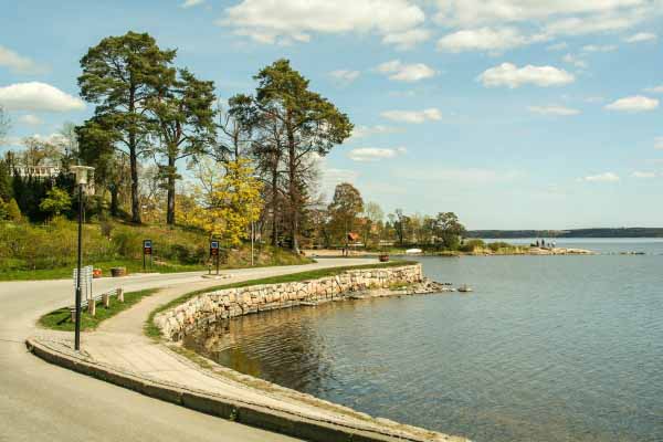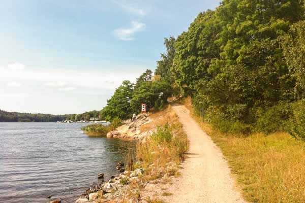 Från Danderyds stora sjukhus går promenaden förbi vackra Stockholms golfklubb på varierande underlag som slingrande spångar, längs klippor och stränder.