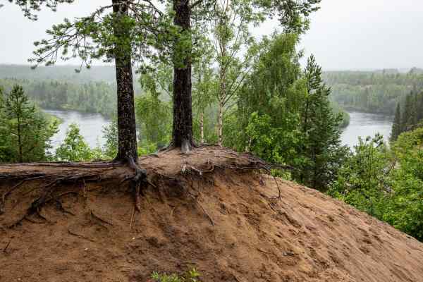 En mäktig naturupplevelse. Här ser man resultatet av inlandsisens avsmältning. Sand och grus som samlats i åsen har sakta forslats ut i havet och efterlämnat denna 160 m långa och 30 m djupa ravin.