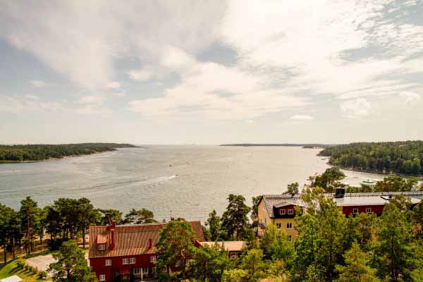 Strandvägens utsikt är oslagbar längs vägen som löper jämte vattnet. I naturreservatet finns otaliga klippor och flera stränder för bad och picknick. Utsiktsplats med bil runt Stockholm.